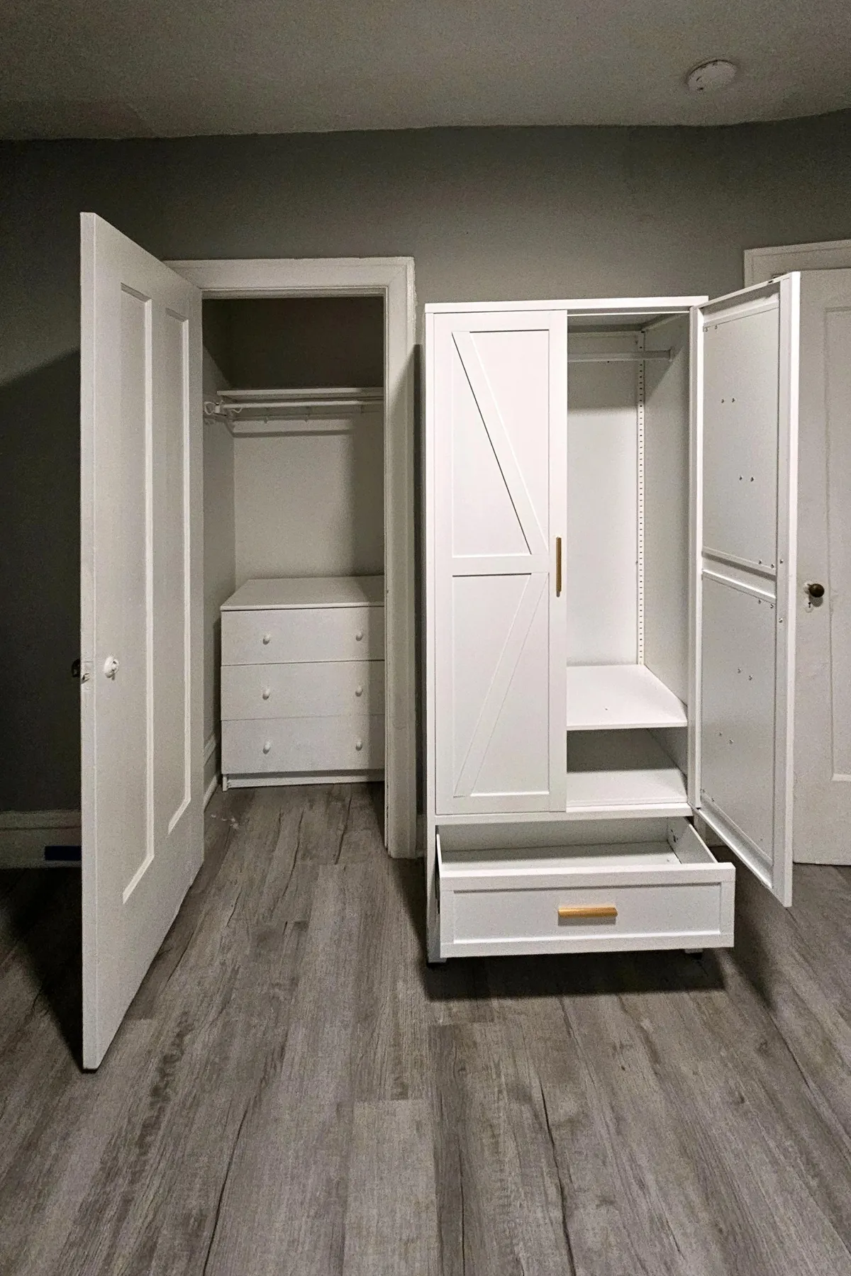 Hall closet for supplies, coats, etc. and space for additional storage.